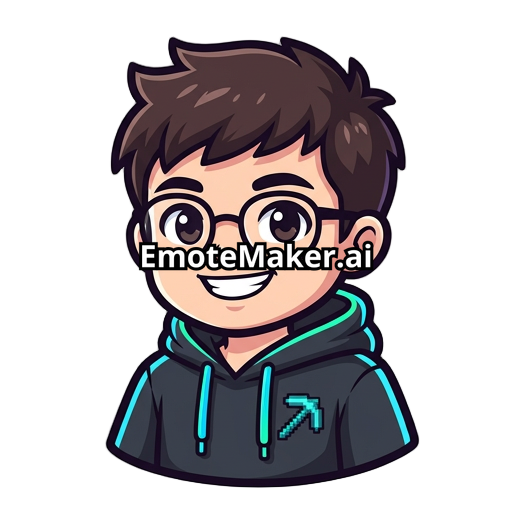 chibi gamer mascot character, male, wearing dark hoodie and round glasses, inspired by a Minecraft content creator, blue and teal neon accent colors, clean vector sticker style, bold thick outline, soft shading, high contrast, expressive face, centered composition, simple background, transparent background, 1:1 square, ultra clean emote design, consistent character face and proportions across all images, same hairstyle, same outfit, same color palette  expression/action: PhreakGG: smil  high qua