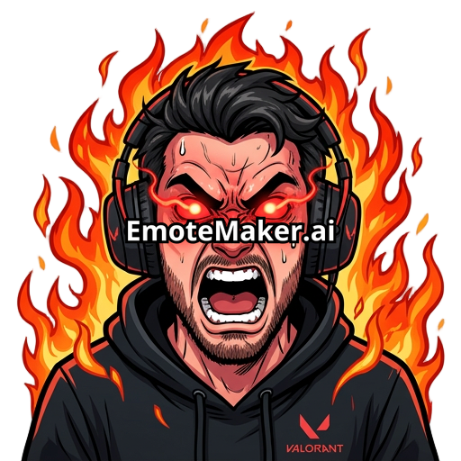 rage face streamer Valorant, exaggerated angry expression, Twitch emote style