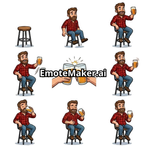 “Chair Drop In” * Your character literally drops into frame sitting in a barstool * Raises beer slightly like a silent salute * Then freezes * Loop animation: slight beer clink motion