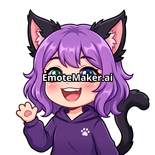 purple haired girl having one green eye and one blue eye with black ears and black tail