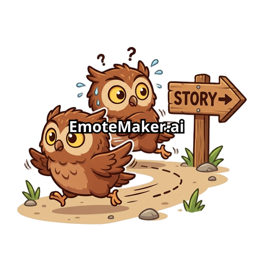 Braune knuffige Eule rennt verwirrt vor einem Story Schild das nach rechts zeigt hin und her und nimmt dann doch den Weg nach links
