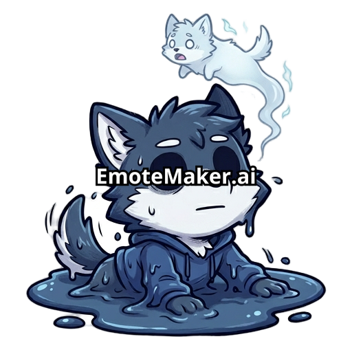 wolf,furry,male,furry malechibi character melting into a puddle, blank expression, soul leaving body, ghost spirit floating up, exaggerated despair, cute but tragic, bold lines, transparent background