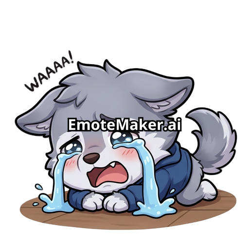 wolf, wolf male, furry, anime,cute chibi character crying loudly, huge tears, collapsed on the floor, dramatic despair pose, soft shading, thick outline,