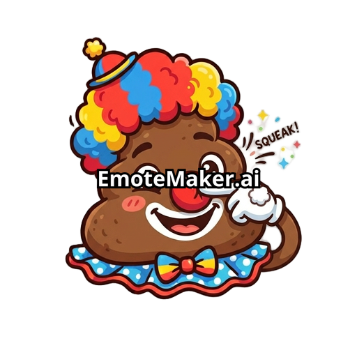 смайлик какашки в парике клоуна и с клоунским носом. анимация - нажимает на клоунский нос